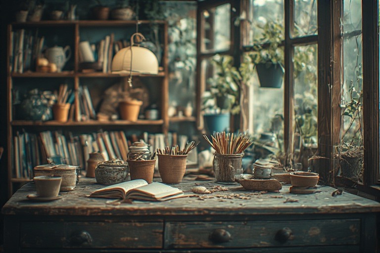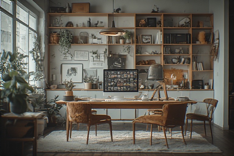 Sudut Kreatif dengan Meja & Rak yang Terorganisir